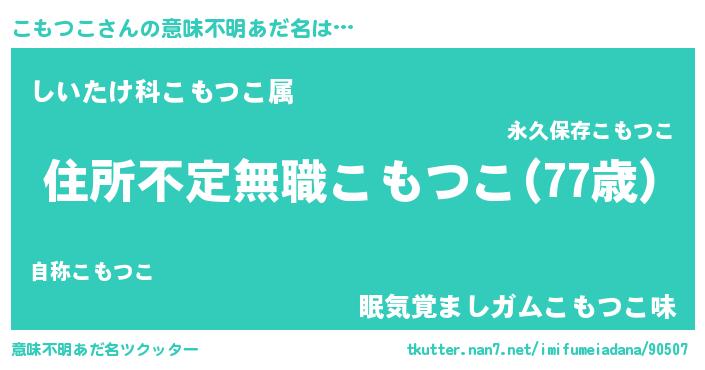 | ヒーロー風カッコイイあだ名 | 『仮面コモダー』『愛の使者こもつこ』 |