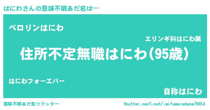 | 男性向けラノベタイトル風あだ名 | 『この素晴らしい世界にはにわを!』 |