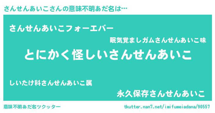 | ポケモン風あだ名 | 『ヒサンセンアイコ』『サンセダネ』 |