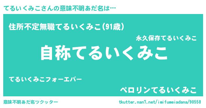 | 男性向けラノベタイトル風あだ名 | 『Re:てるいくみこから始める異世界生活』 |