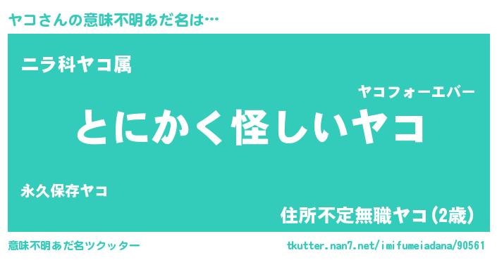 | 胡散臭い通販商品みたいなあだ名 | 『信頼と実績のネックレス…その名も「ヤコ」』 |