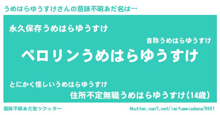 | 肩書あだ名 | 『うめはらゆうすけ御曹司』 |