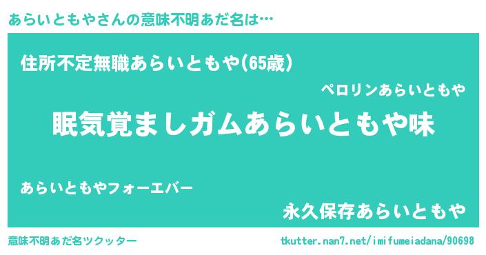 | 胡散臭い通販商品みたいなあだ名 | 『100人中100人が認めたマグネット磁石…その名も「あらいともや」』 |
