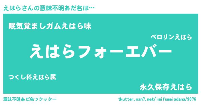 | 欧米人風あだ名 | 『えはらクリステル』『ダニエルえはら』 |