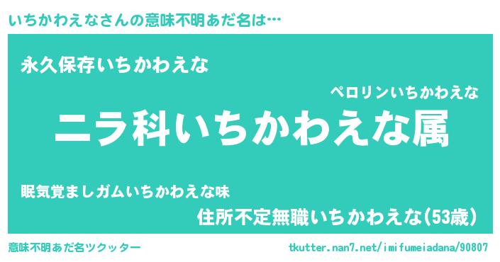 | 恥ずかしいあだ名 | 『いちちん』『プリティーいちかわえな』 |