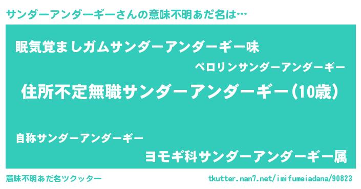 | 欧米人風あだ名 | 『アンジェラ・サンダーアンダーギー』 |