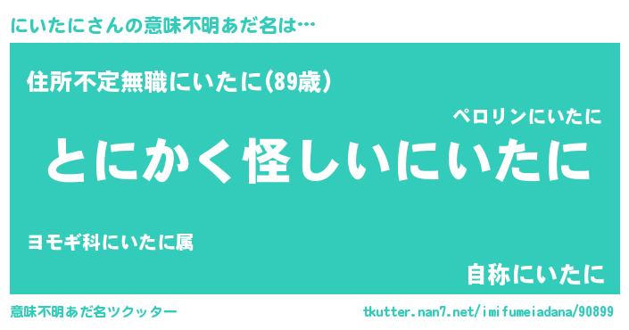 | 男性向けラノベタイトル風あだ名 | 『にいたにの嫁は女の子じゃないと思った?』 |