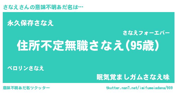 | 女子向けラノベタイトル風あだ名 | 『さなえが死なない童話 林檎のさなえの診療簿』 |