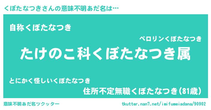 | 男性向けラノベタイトル風あだ名 | 『転生したらくぼたなつきだった件』 |
