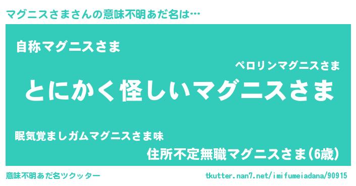 | ピコ太郎風あだ名 | 『マグ三郎』『マコ三郎』『ママ太郎』 |