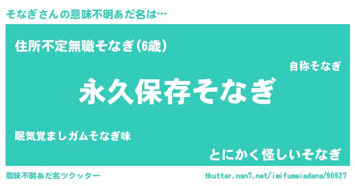 | ポケモン風あだ名 | 『ゼニソナ』『ソーナイ』『ヒソナギ』 |