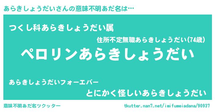 | 欧米人風あだ名 | 『マイケルあらきしょうだい』 |