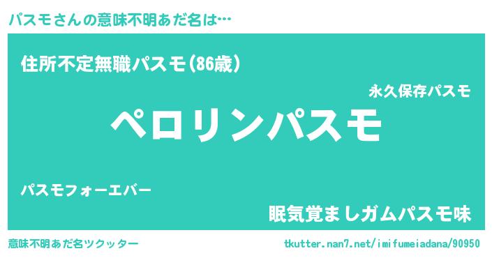 | ヘコむあだ名 | 『パスもー』『パスモ(震え声)』 |