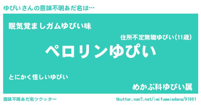 | ポケモン風あだ名 | 『ユピチュウ』『ユックウザ』 |