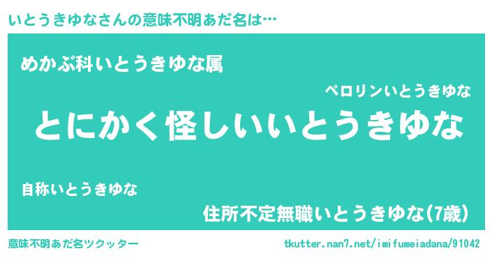 | 女子向けラノベタイトル風あだ名 | 『いとうきゆなは平凡を望む』 |