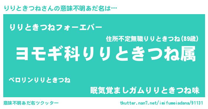 | 欧米人風あだ名 | 『トリンドルりりときつね』 |