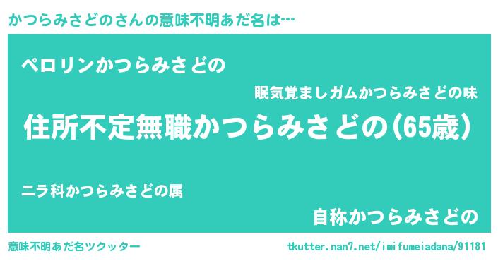 | 欧米人風あだ名 | 『ダレノガレかつらみさどの』 |
