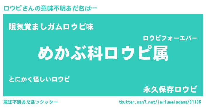 | 男性向けラノベタイトル風あだ名 | 『ロウピスレイヤー』『緋弾のロウピ』 |