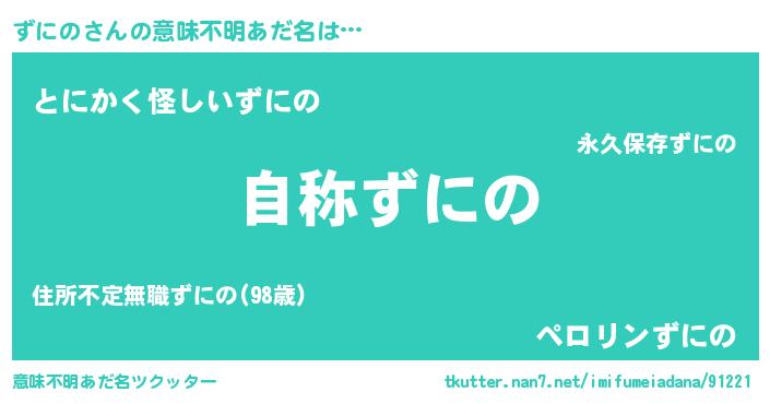 | ポケモン風あだ名 | 『ズニセウス』『ヒズニノ』 |