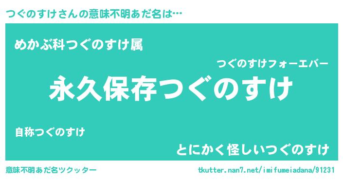 | 男性向けラノベタイトル風あだ名 | 『つぐのすけという概念が存在しない退屈な世界 』 |