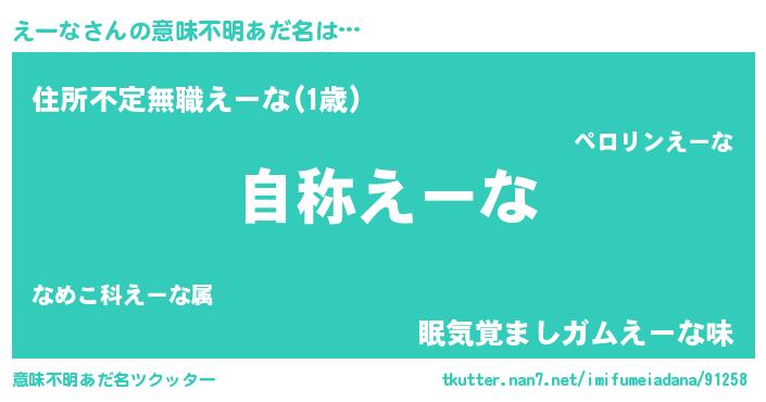 | 男性向けラノベタイトル風あだ名 | 『Re:えーなから始める異世界生活』 |