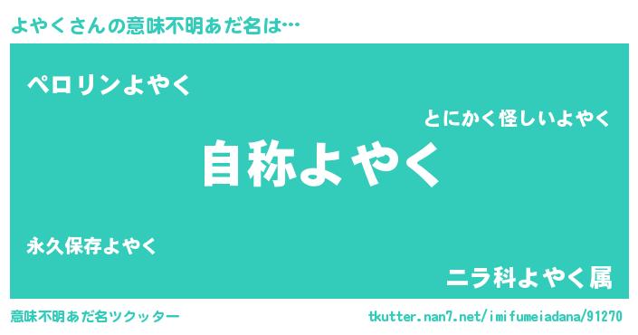 | 可愛いあだ名 | 『よやうちぇる』『よんよん』 |