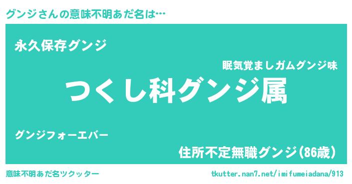 | ヘコむあだ名 | 『グンジ(小並感)』『なまこ酢』 |