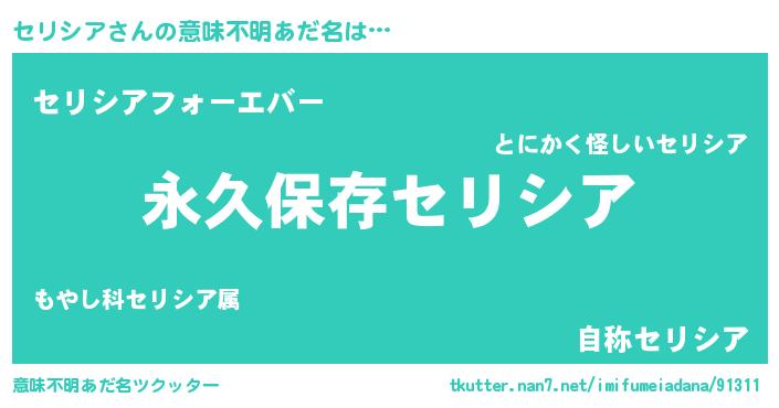| ファンタジー風あだ名 | 『セリディッシュ』『ゼセリトゥ』 |