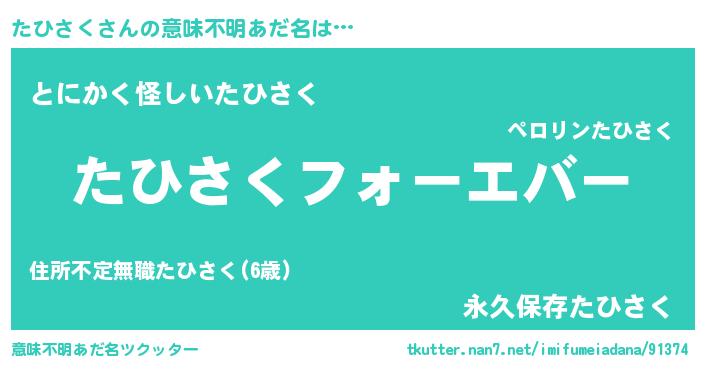 | ヒーロー風カッコイイあだ名 | 『ウルトラたひさくマン』『黄金騎士タヒ』 |