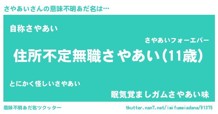 | ヒーロー風カッコイイあだ名 | 『仮面サヤダー』『超時空戦士サヤアイ』 |