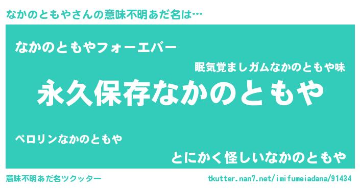 | 男性向けラノベタイトル風あだ名 | 『なかのともやという概念が存在しない退屈な世界 』 |