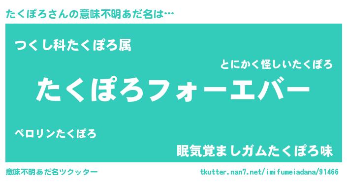 | 欧米人風あだ名 | 『たくぽろクリステル』 |