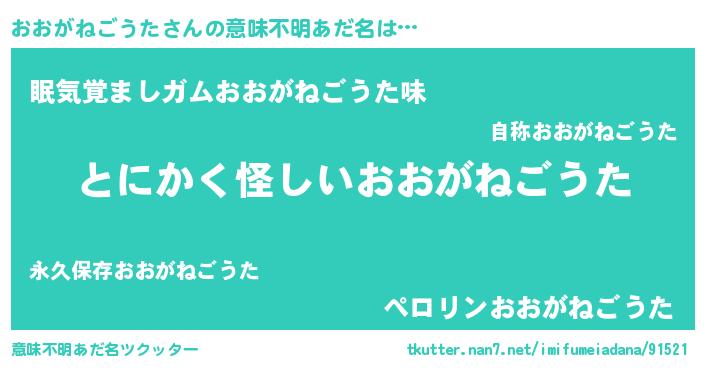 | 男性向けラノベタイトル風あだ名 | 『おおがねごうたの嫁は女の子じゃないと思った?』 |