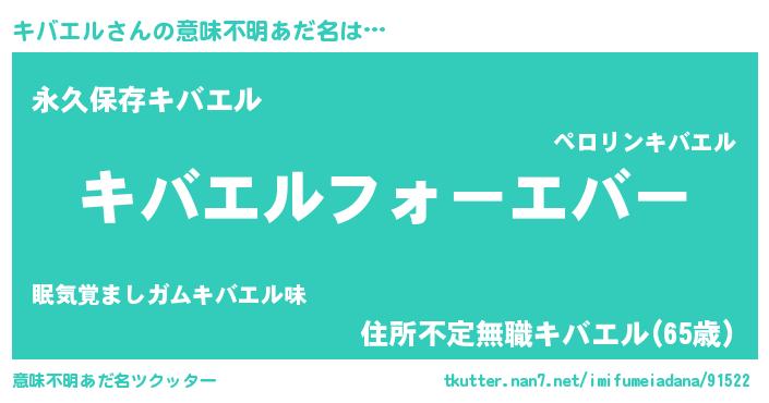 | ヒーロー風カッコイイあだ名 | 『ウルトラキバエルマン』『ネオキバエル』 |