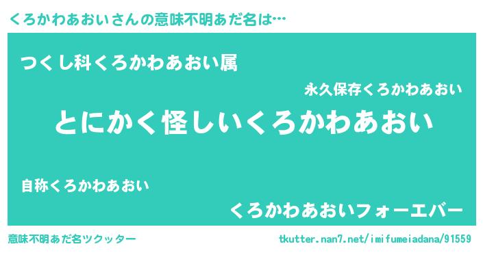 | 欧米人風あだ名 | 『くろかわあおい・ステッグマイヤー』 |