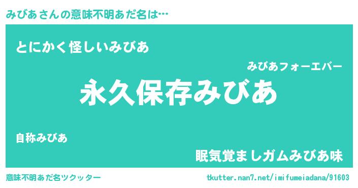 | 欧米人風あだ名 | 『ダルビッシュみびあ』『ウサインみびあ』 |