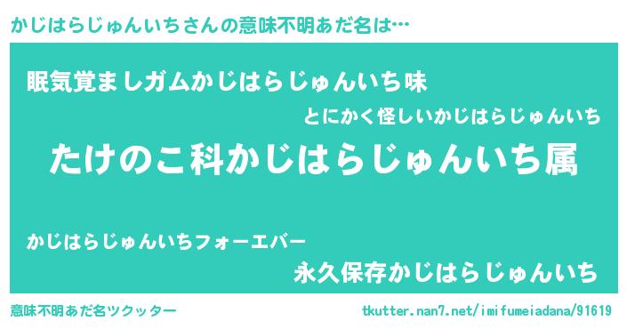 | 男性向けラノベタイトル風あだ名 | 『転生したらかじはらじゅんいちだった件』 |