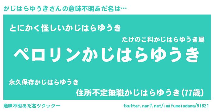 | 胡散臭い通販商品みたいなあだ名 | 『必ず成功する霊験あらたかなお札…その名も「かじはらゆうき」』 |
