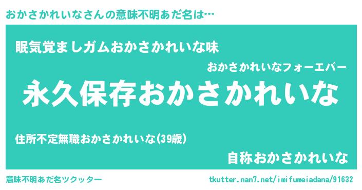 | 欧米人風あだ名 | 『おかさかれいな・ステッグマイヤー』 |