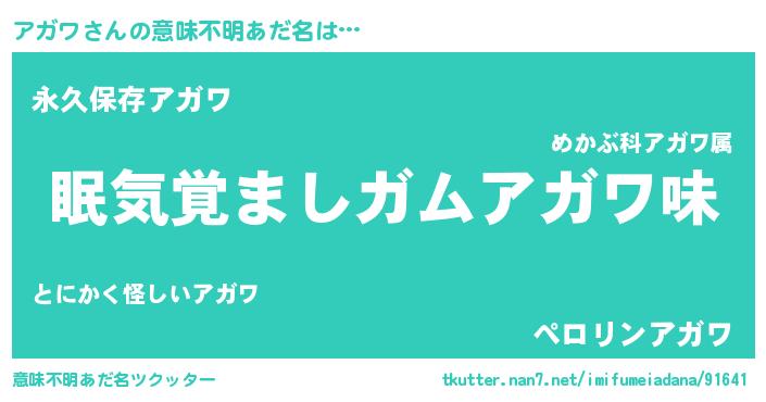 | ヒーロー風カッコイイあだ名 | 『慈愛の使者アガワ』『ネオアガワ』 |
