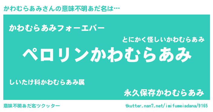 | ヒーロー風カッコイイあだ名 | 『スーパーカワムラアミ』『幻影騎士カワ』 |