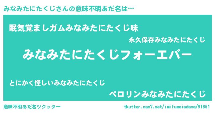 | 欧米人風あだ名 | 『みなみたにたくじクリステル』 |