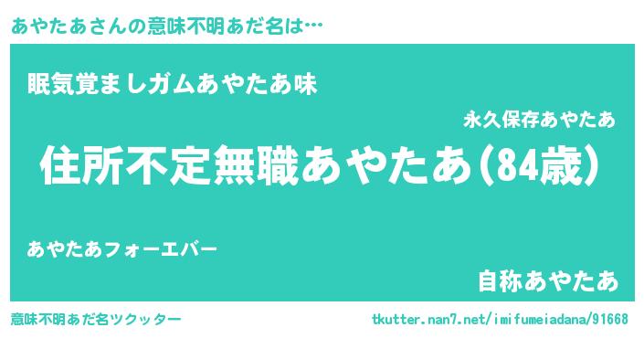 | ヒーロー風カッコイイあだ名 | 『仮面アヤダー』『正義の使者あやたあ』 |
