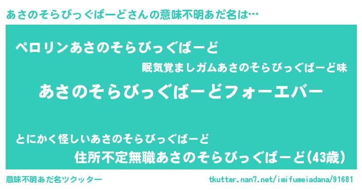 | ファンタジー風あだ名 | 『エターナルアサノソラビッグバードー』 |