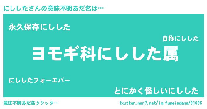 | 男性向けラノベタイトル風あだ名 | 『にしした~年齢イコール彼女いない歴の魔法使い~』 |