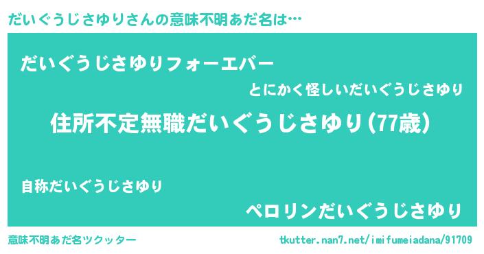 | 伝説のあだ名 | 『秘められし陰陽師だいぐうじさゆり』 |