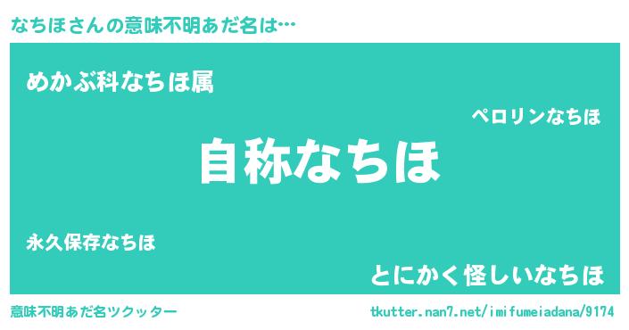 | 男性向けラノベタイトル風あだ名 | 『なちほに滅ぼされるだけの簡単なお仕事です』 |
