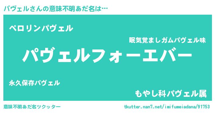 | ファンタジー風あだ名 | 『エターナルパヴェルー』『パヴフェル』 |