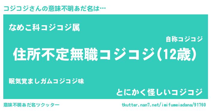 | 女子向けラノベタイトル風あだ名 | 『乙女ゲームの破滅フラグしかない悪役コジコジに転生してしまった…』 |