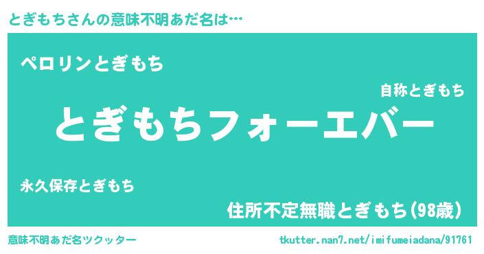 | ポケモン風あだ名 | 『トギモダネ』『トギチュウ』 |